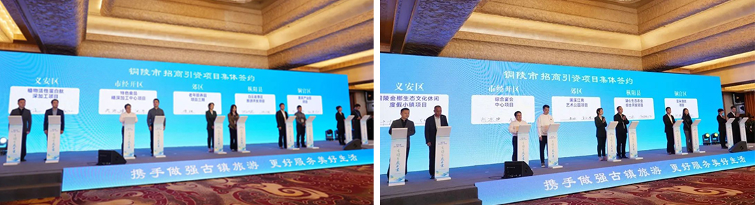 會上發(fā)布了長三角十大古鎮(zhèn)文旅消費新場景,長三角生態(tài)綠色一體化發(fā)展示范區(qū)執(zhí)行委員會和滬蘇浙皖四地文化和旅游部門共同為古鎮(zhèn)代表頒發(fā)獎杯。著名主持人周群為大通古鎮(zhèn)作文旅推介,講述大通古鎮(zhèn)的傳奇與魅力。隨后,10個在銅招商引資項目進行集體簽約。上海市南翔古鎮(zhèn)、江蘇省黎里古鎮(zhèn)、浙江省西塘古鎮(zhèn)、安徽省西遞古鎮(zhèn)的代表分別就古鎮(zhèn)發(fā)展案例進行分享;揚州大學(xué)旅游烹飪學(xué)院教授、博士,研究生導(dǎo)師孫琨和安徽師范大學(xué)文化旅游策劃研究中心主任、教授,博士生導(dǎo)師楊效忠分別就“新質(zhì)生產(chǎn)力背景下古鎮(zhèn)文旅業(yè)態(tài)創(chuàng)新升級”“古鎮(zhèn)旅游創(chuàng)意方法與發(fā)展路徑”進行交流分享。