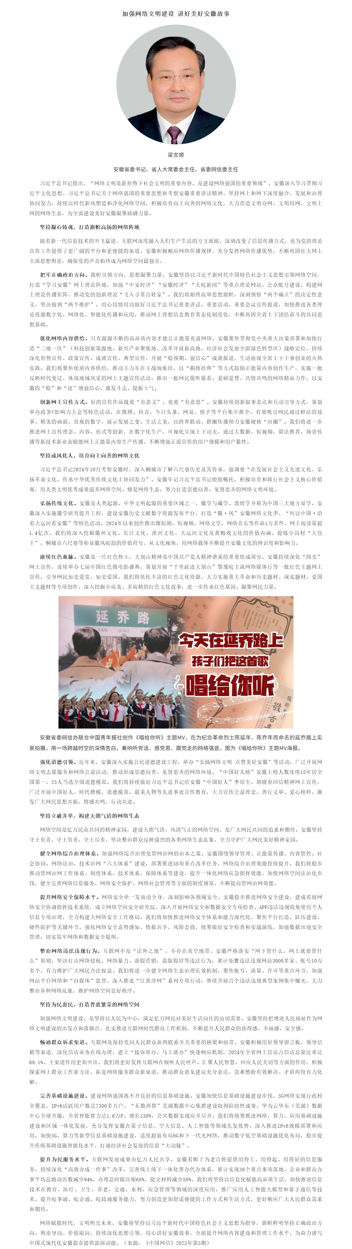 安徽省委書記、省人大常委會主任、省委網信委主任梁言順 在《中國網信》雜志發(fā)表署名文章