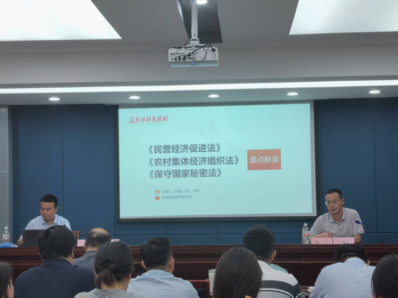 為深入貫徹落實黨的二十大關(guān)于“堅持全面依法治國”的戰(zhàn)略部署,全面推進國有企業(yè)合規(guī)管理體系建設(shè),切實將法治思維融入集團改革發(fā)展大局,2025年6月20日下午,銅陵金誠投資集團在三樓大會議室組織開展“新法新規(guī)專題學習培訓會”。集團副總經(jīng)理戴力主持會議,集團法律顧問、安徽通聞律師事務(wù)所主任陳磊律師受邀作專題授課,集團及權(quán)屬公司負責人及業(yè)務(wù)骨干等40余人參加培訓。