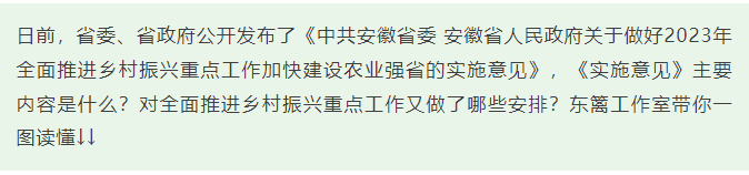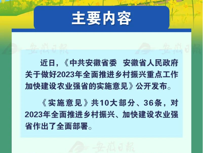 【轉(zhuǎn)載-政策解讀】中共安徽省委 安徽省人民政府關(guān)于做好2023年全面推進(jìn)鄉(xiāng)村振興重點(diǎn)工作加快建設(shè)農(nóng)業(yè)強(qiáng)省的實(shí)施意見(jiàn)(解讀)