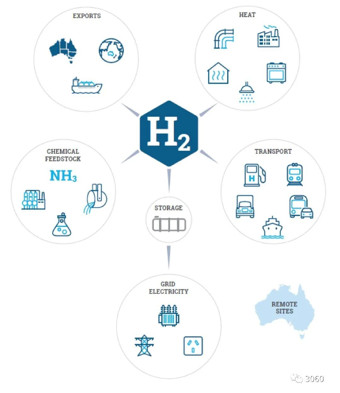 預(yù)計(jì)到2030年,全球大規(guī)模綠氫生產(chǎn)基地和運(yùn)輸基礎(chǔ)設(shè)施布局完備,屆時(shí)氫可以從澳大利亞、智利或中東等地運(yùn)送到美國(guó)、歐洲、日本等需求中心地區(qū),儲(chǔ)運(yùn)成本為有望降低至2-3美元/公斤。低廉的氫獲取成本加上具有經(jīng)濟(jì)性的儲(chǔ)運(yùn)成本,將促成全球氫能貿(mào)易格局,釋放更多氫能應(yīng)用(例如運(yùn)輸、化工、冶煉、原料等)的需求(見(jiàn)圖3)。下文將展開(kāi)討論。
