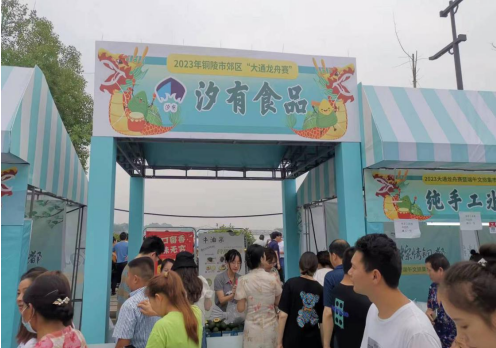 6月22日-24日“姜白舟紅 粽情銅都”大通龍舟賽暨端午文旅集市活動(dòng)現(xiàn)場,金誠大通文旅公司向游客熱情介紹大通古鎮(zhèn)風(fēng)景區(qū)特色文創(chuàng)產(chǎn)品、剪紙作品,加強(qiáng)景區(qū)宣傳力度,同時(shí)現(xiàn)場金誠金建公司進(jìn)行汐有食品及線上店鋪宣傳。