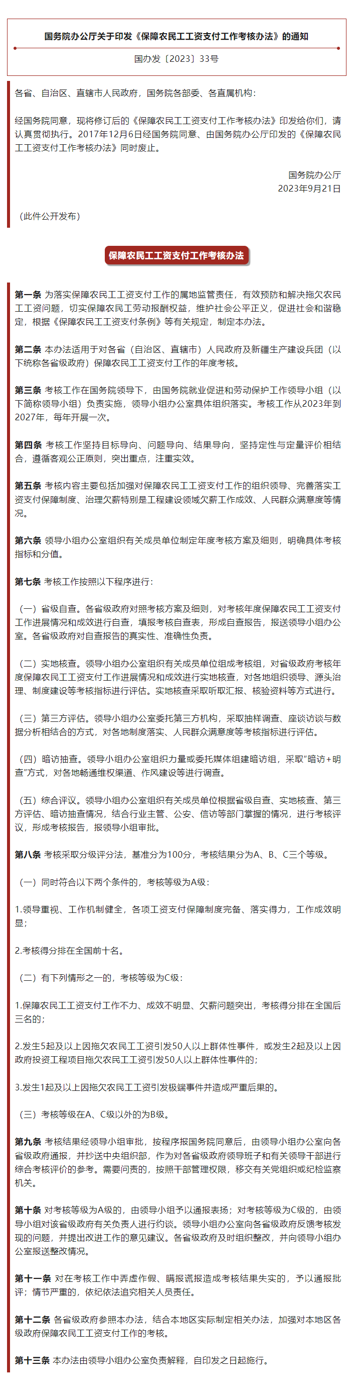 國(guó)務(wù)院辦公廳關(guān)于印發(fā)《保障農(nóng)民工工資支付工作考核辦法》的通知