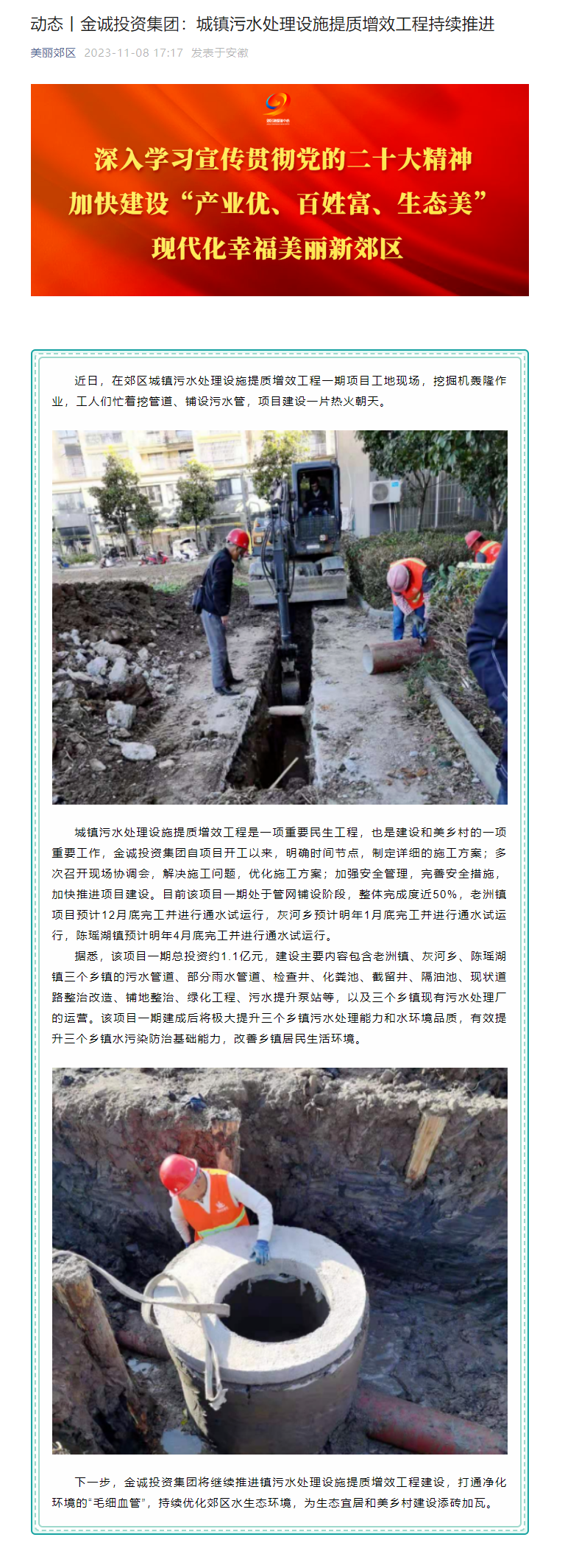動(dòng)態(tài)丨金誠(chéng)投資集團(tuán):城鎮(zhèn)污水處理設(shè)施提質(zhì)增效工程持續(xù)推進(jìn)