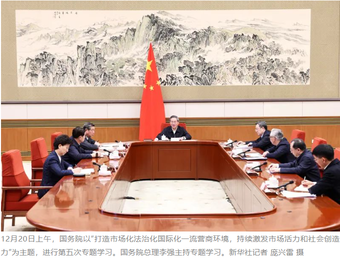 12月20日上午,國(guó)務(wù)院以“打造市場(chǎng)化法治化國(guó)際化一流營(yíng)商環(huán)境,持續(xù)激發(fā)市場(chǎng)活力和社會(huì)創(chuàng)造力”為主題,進(jìn)行第五次專(zhuān)題學(xué)習(xí)。國(guó)務(wù)院總理李強(qiáng)主持專(zhuān)題學(xué)習(xí)。華東政法大學(xué)教授羅培新作了講解。國(guó)務(wù)院副總理丁薛祥,國(guó)務(wù)委員王小洪、吳政隆作交流發(fā)言。