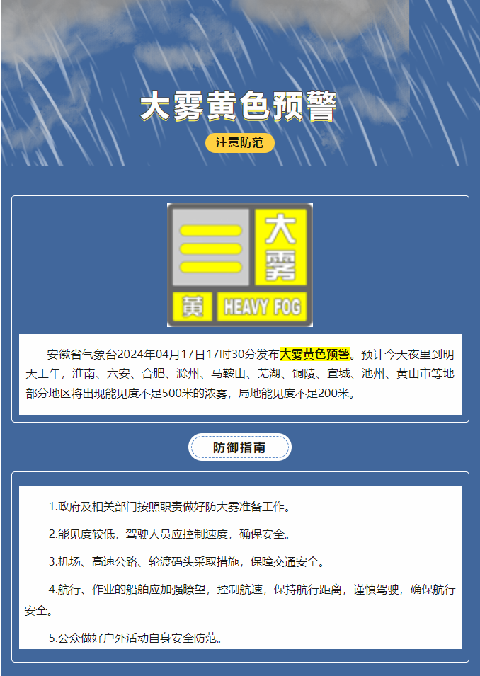 轉(zhuǎn)載:安徽省氣象臺發(fā)布大霧黃色預(yù)警