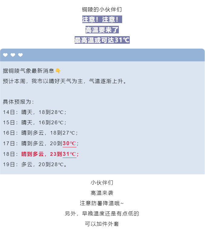 轉(zhuǎn)載:銅陵最高氣溫直沖31度↑