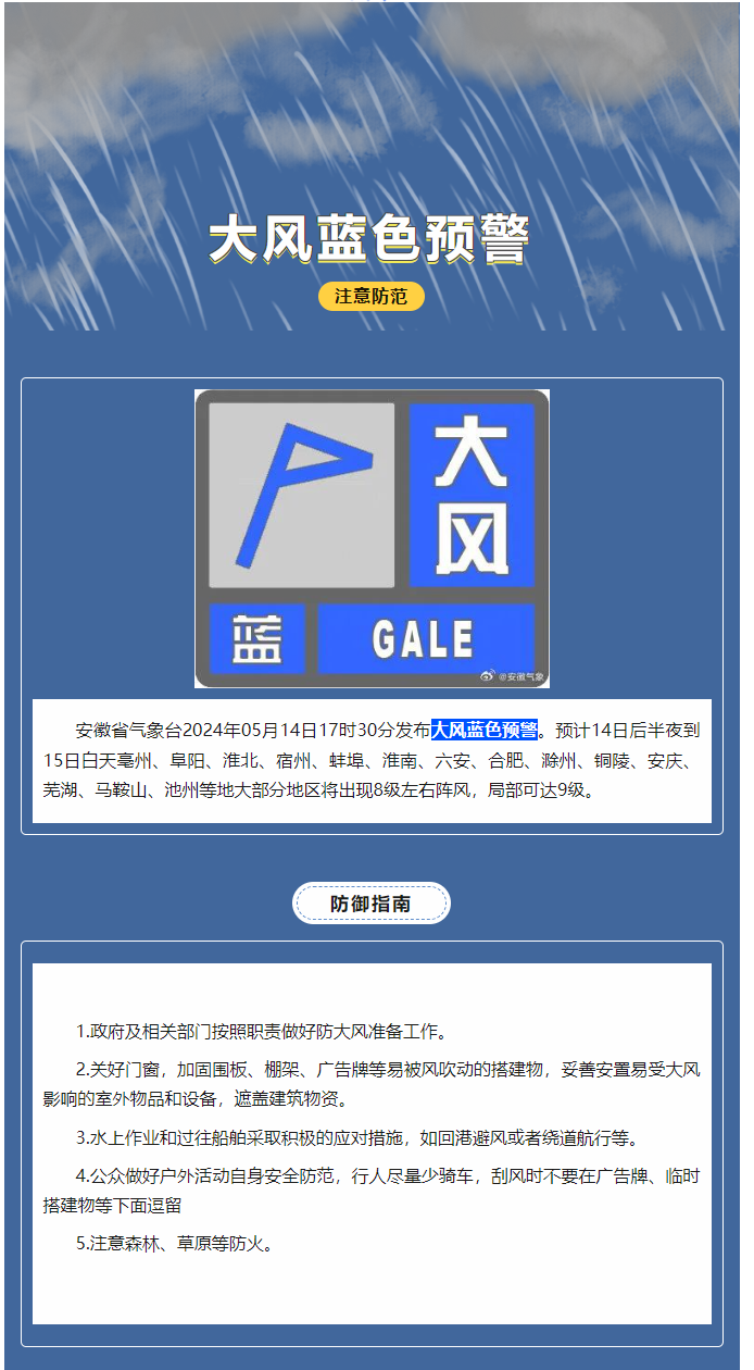 轉(zhuǎn)載:安徽發(fā)布大風藍色預警